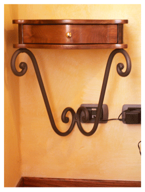 Realizzato interamente in legno noce nazionale unendo il classico al moderno con accurata lucidatura a cera. Completo di supporti in ferro battuto di facile applicazione a parete.