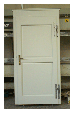 con bozze sformellate in massello e parte superiore con vetri di sicurezza trasparenti, satinati, sabbiati, decorati. Possibilità serratura di sicurezza. Verniciatura a flattyng opaco o lucido.
